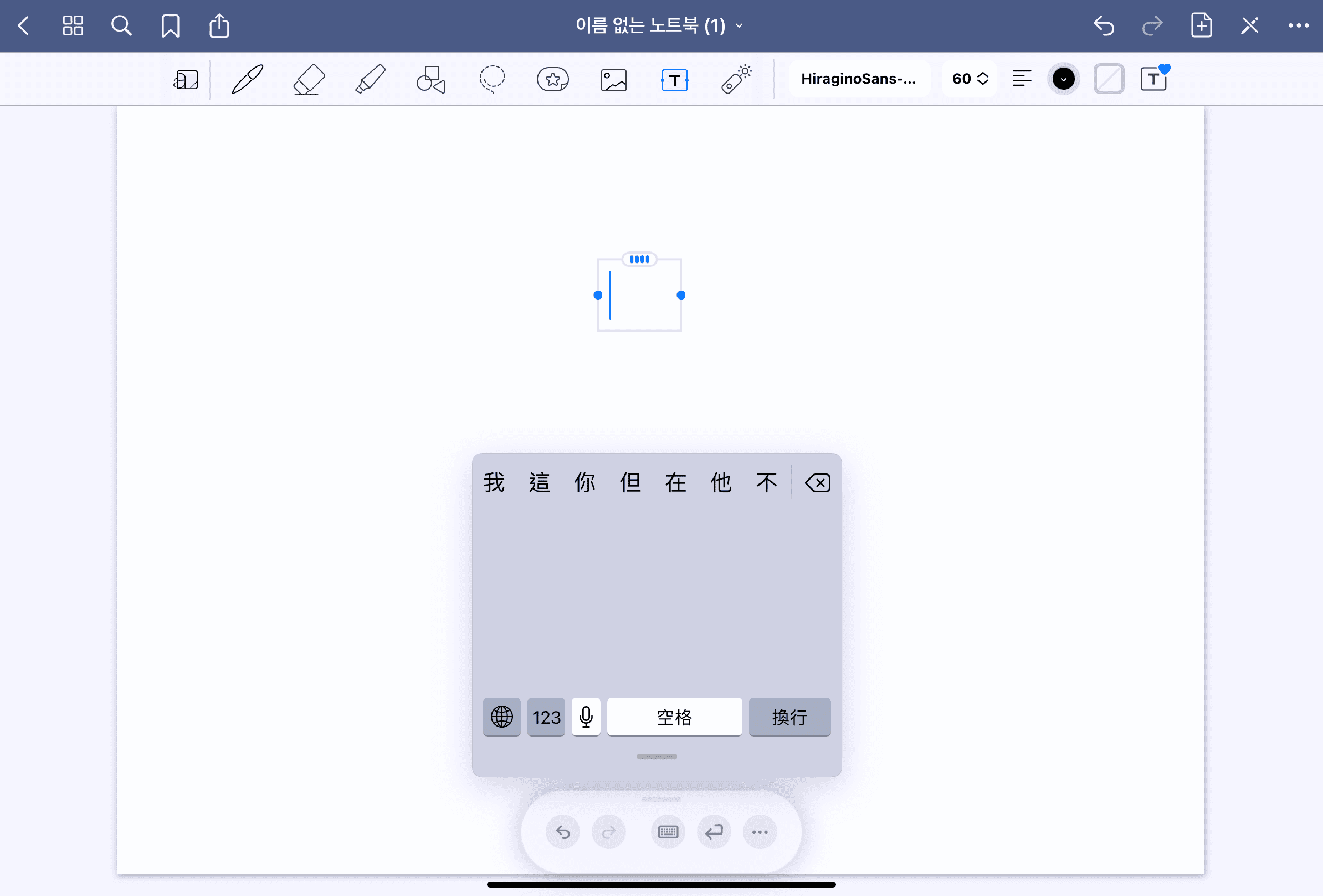 이게 중국어(번체) 키보드를 추가한 사진이에요. 손글씨로 설정하면 이렇게 그림판 같은 키보드를 사용할 수 있어서 좋은 것 같아요. 한자를 사용할 때는 꼭 키보드를 중국어 또는 일본어로 바꿔야 합니다!